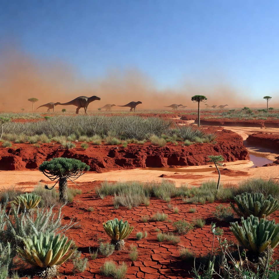 Foi nesse ambiente que viveram alguns dos primeiros dinossauros do planeta, muito antes de espécies gigantes como o Tiranossauro existirem.